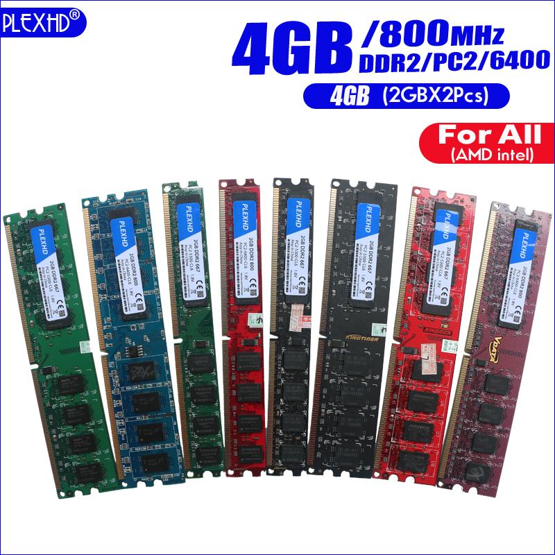 PLEXHD 4G 4GB(2GBX2pcs) DDR2 pc2 6400 800Mhz (Narrow plate) (wide version) Sent at random For Desktop PC pc2-6400 ddr2 800 MHZ (For intel amd) High Compatible