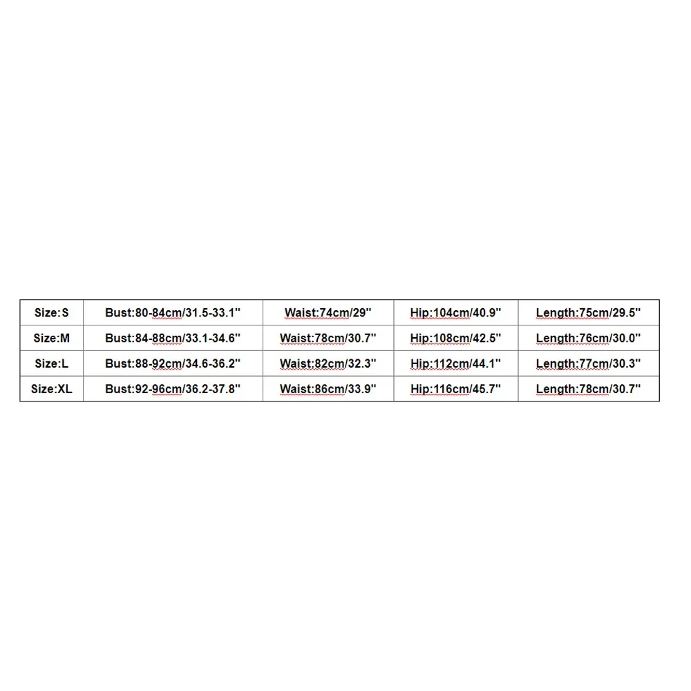 Size Bust Waist Hip Length S 80-84cm/31.5-33.1" 74cm/29" 104cm/40.9" 75cm/29.5" M 84-88cm/33.1-34.6" 78cm/30.7" 108cm/42.5" 76cm/30.0" L 88-92cm/34.6-36.2" 82cm/32.3" 112cm/44.1" 77cm/30.3" XL 92-96cm/36.2-37.8" 86cm/33.9" 116cm/45.7" 78cm/30.7" Size:S Bust:80-84cm/31.5-33.1" Waist:74cm/29" Hip:104cm/40.9" Length:75cm/29.5" Size:M Bust:84-88cm/33.1-34.6" Waist:78cm/30.7" Hip:108cm/42.5" Length:76cm/30.0" Size:L Bust:88-92cm/34.6-36.2" Waist:82cm/32.3" Hip:112cm/44.1" Length:77cm/30.3" Size:XL Bust:92-96cm/36.2-37.8" Waist:86cm/33.9" Hip:116cm/45.7" Length:78cm/30.7"